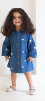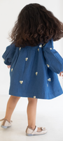 Get ready for the merry and magical season ahead with this classic-style dress made from beautiful embroidered denim. Round neckline with a Peter Pan collar, and long sleeves with elasticated, frilled cuffs. Gathered seam at the waist for added volume.